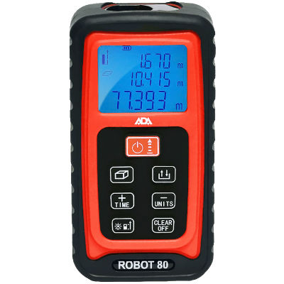 Лазерный дальномер ADA Robot 80 предназначен для измерения расстояний от 0,05 до 80 м в различных условиях, как на улице при дневном свете, так и в помещении при искусственном освещении. Точность измерения расстояний составляет ± 1.5 мм.