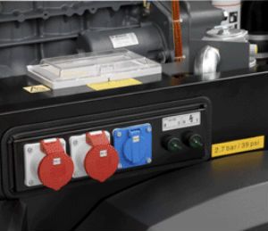 Компрессор оснащен генератором MECC ALTE мощностью 12 kVA (9,6 кВт), вырабатывающим электроэнергию одновременно с подачей сжатого воздуха.